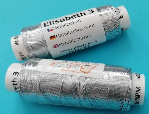 Metalická niť - 84%viskóza, 23%Polyester metalizovaný - Nm 8 - Tex 125 - na špulce je 50m - náhrada za dřívě vyráběnou přízi Titano - český výrobek