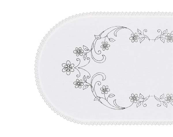 Látková předloha vytištěná modře na bavlně - ubrus je obroubený bílou krajkou - velikost 40x80cm