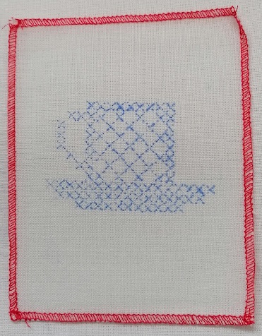 Dětské vyšívání - natištěno modře na bílé - obroubeno červeně - velikost 12x15cm