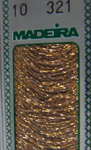 Hrubší kovová bavlnka Madeira10 - pro všestranné použití - vyšívání, háčkování, pletení a ostatní ruční práce - složení 40% polyamid a 60% metalický polyester - v balíčku je 20 metrů příze