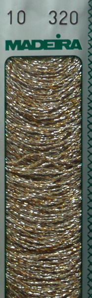 Hrubší kovová bavlnka Madeira10 - pro všestranné použití - vyšívání, háčkování, pletení a ostatní ruční práce - složení 40% polyamid a 60% metalický polyester - v balíčku je 20 metrů příze