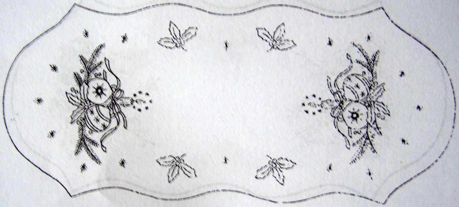 Látková předloha vytištěná modře na bílém tesilenu - ubrus je obroubený bílou krajkou - velikost 40x80cm
